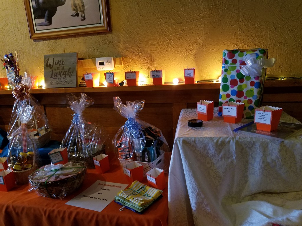 Mona Moon Naturals, OSB Ciderworks, and the Mystery Box were some of the hot raffle items on this table.
