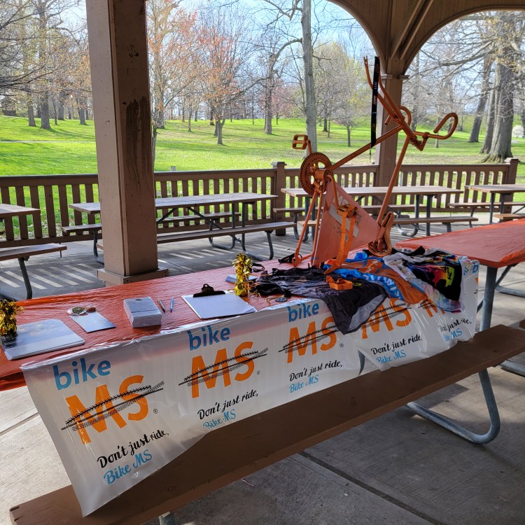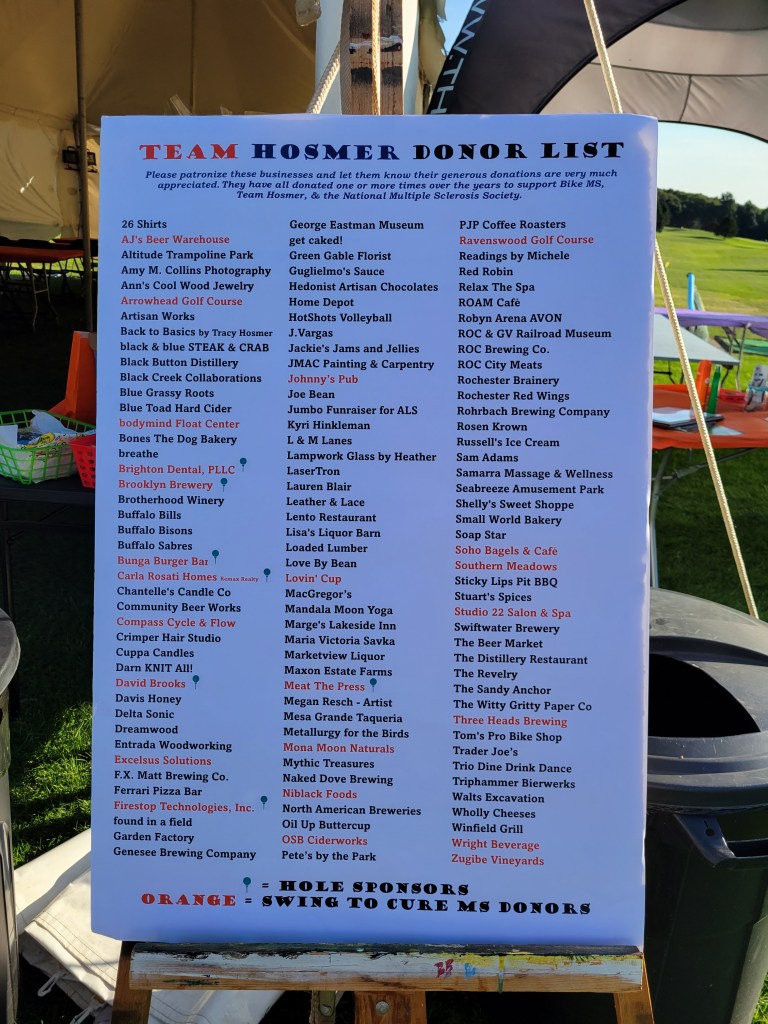 Bike MS ROC the Great Lakes 2023 was cancelled due to weather conditions near Lakeside Beach State Park. Shawn rode on his trainer. We met for breakfast and those who were able gathered in Rochester and visited a few of our community partners who have hosted us and donated to us over the years. The following day, we biked 14 miles on the canal path to uphold our pledge to ride for a cure.